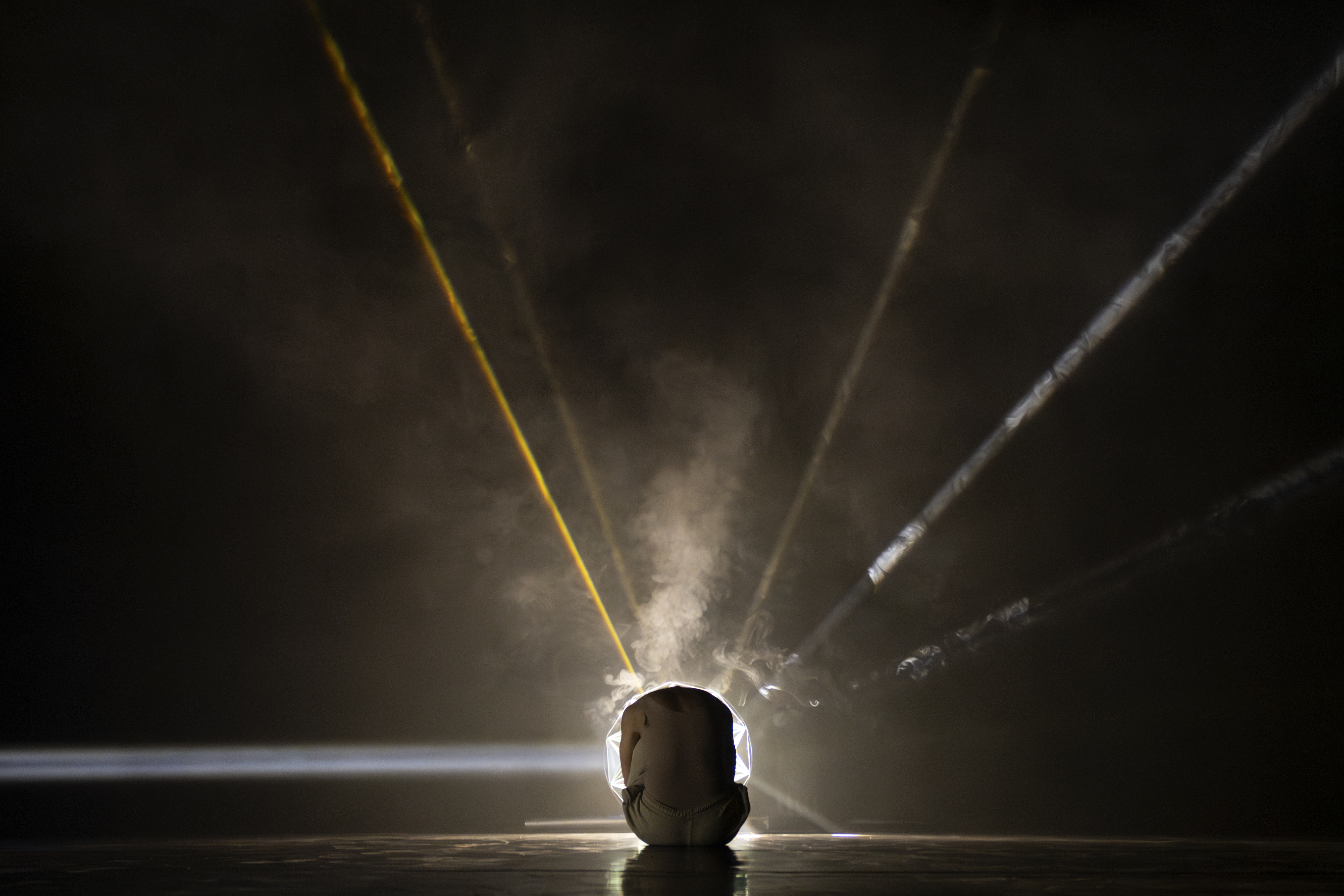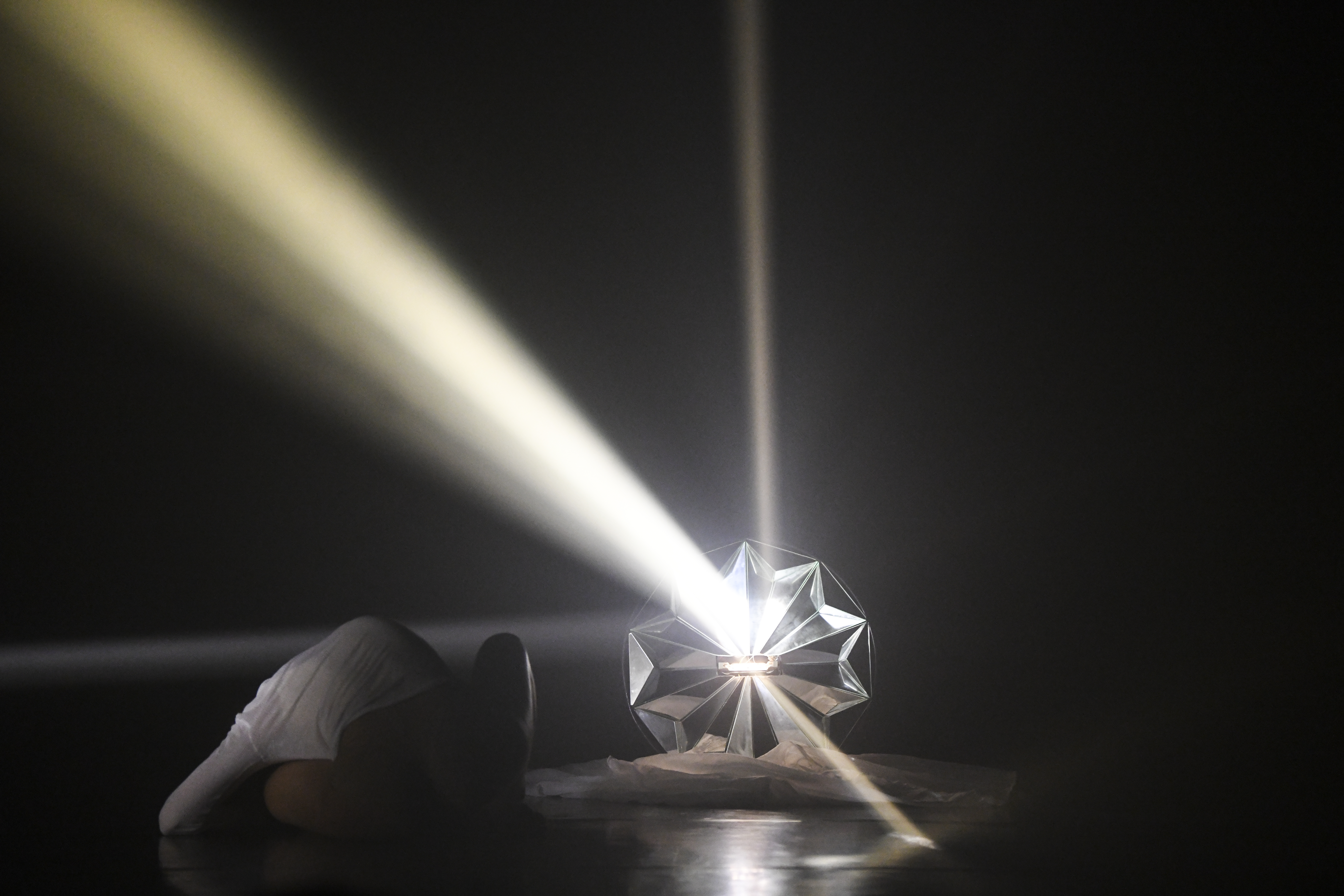 La nascita, che include in sè il concetto di morte e trasmutazione, da sempre è legata nell’immaginario collettivo e religioso alla luce. In “15:36” la luce è viva e diventa performer in grado sia di generare luce attraverso l’ interno di sé stessa che di modificare la luce riflessa nello spazio che abita. Il dispositivo luminoso BIRTH, usato nella performance, ha una sua grande versatilità e è capace di creare multi-effetti e diverse tipologie di irradiazioni luminose.“Birth” è una lampada emotiva in grado di adeguarsi alle varie suggestioni e interagire con i performer nella costruzione drammaturgica. Creata e brevettata da Pietro Cardarelli attualmente ne esistono solo sei esemplari.