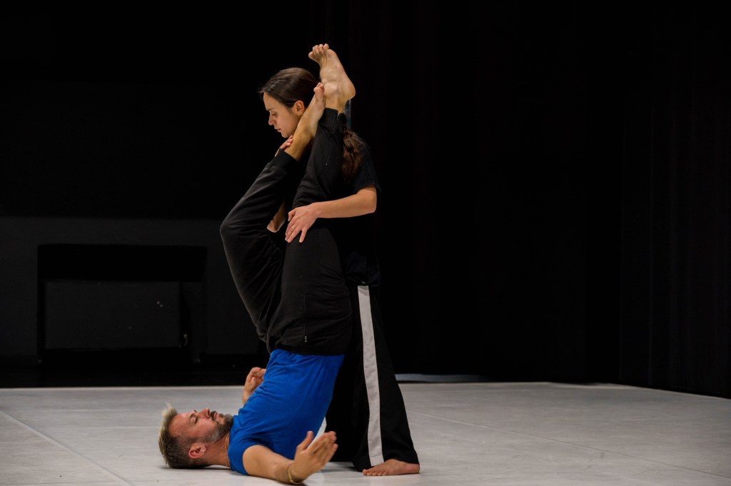I due autori e interpreti esplorano qui il binomio “lui-lei”-“maschile-femminile” e i vari tentativi si prevaricazione di un genere sull’altro, in una ripetuta azione di ascesa e discesa dello spazio verticale in cui sono costretti.