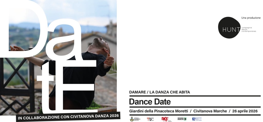 DANCE DATE – Civitanova Marche è possibile grazie al Comune di Civitanova Marche, ai Teatri di Civitanova, alla Pinacoteca Civica Moretti, ad AMAT, alla Regione Marche e al Ministero della Cultura